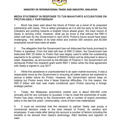 Proton is known globally as a Malaysian brand & nothing can take tht away from them- @Mustapa_Mohamed responding to Tun Mahathir's criticism
