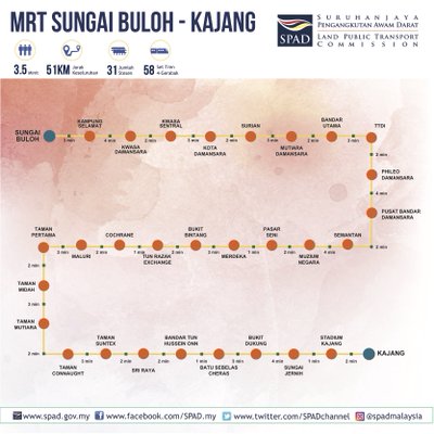 SPAD Channel Tweeted: Infografik terkini mengenai masa perjalanan dari stesen ke stesen di bawah Laluan MRT Sungai Buloh - Kajang.